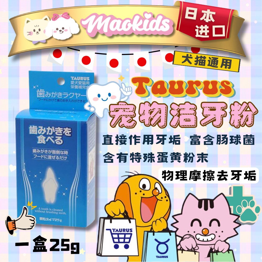 日本Taurus金牛座 宠物洁牙粉 含特殊蛋黄粉末 物理摩擦清洁牙垢 一盒25g