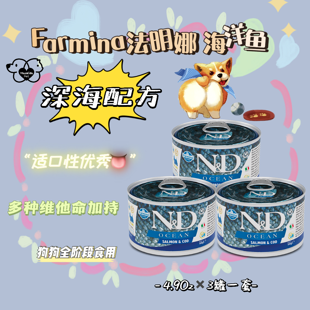 Farmina法明娜 狗狗用 三文鱼鳕鱼罐头 美毛护肤 一套4.9oz*3罐