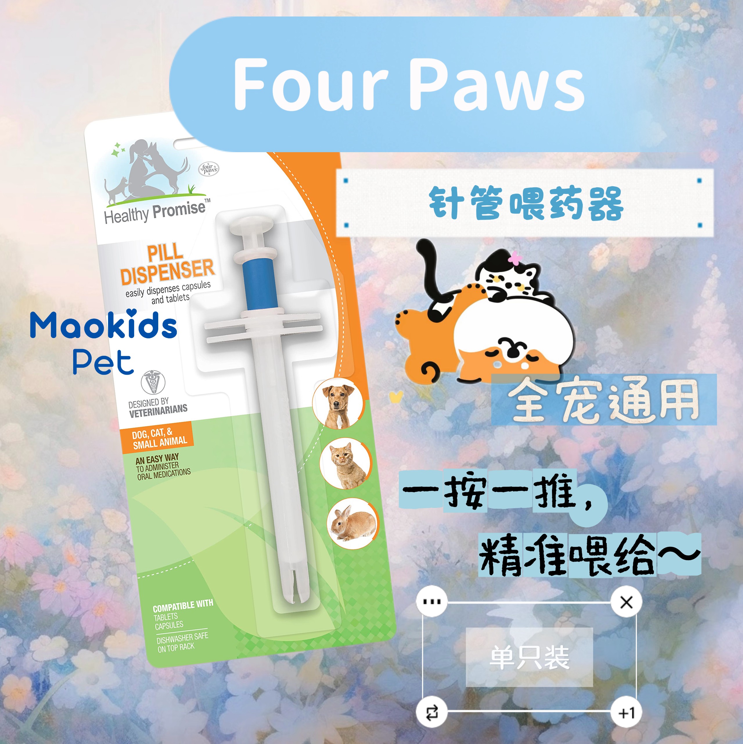 FourPaws 针管宠物喂药器 一按一推高效喂药 宠物不抗拒