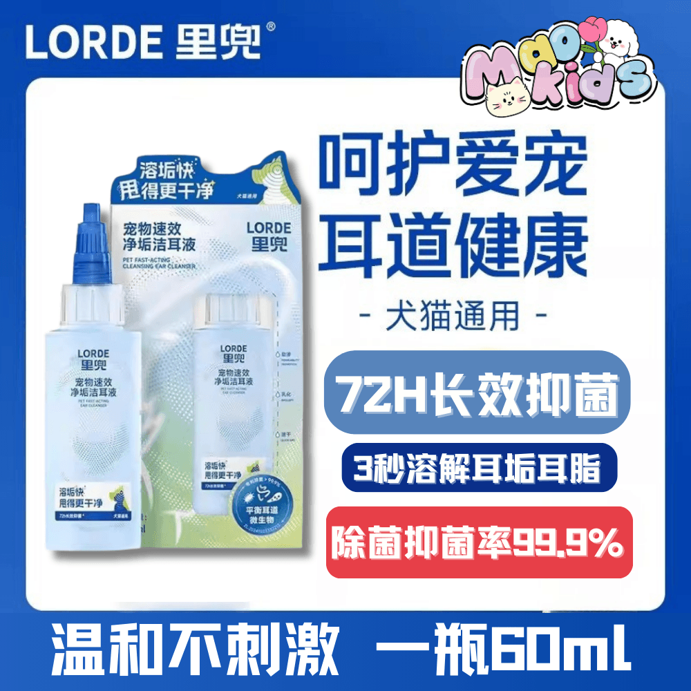 Lorde里兜 宠物洁耳液 除耳螨滴耳液 猫狗专用 洗耳液肤灵清洁温和干爽 一瓶60ml