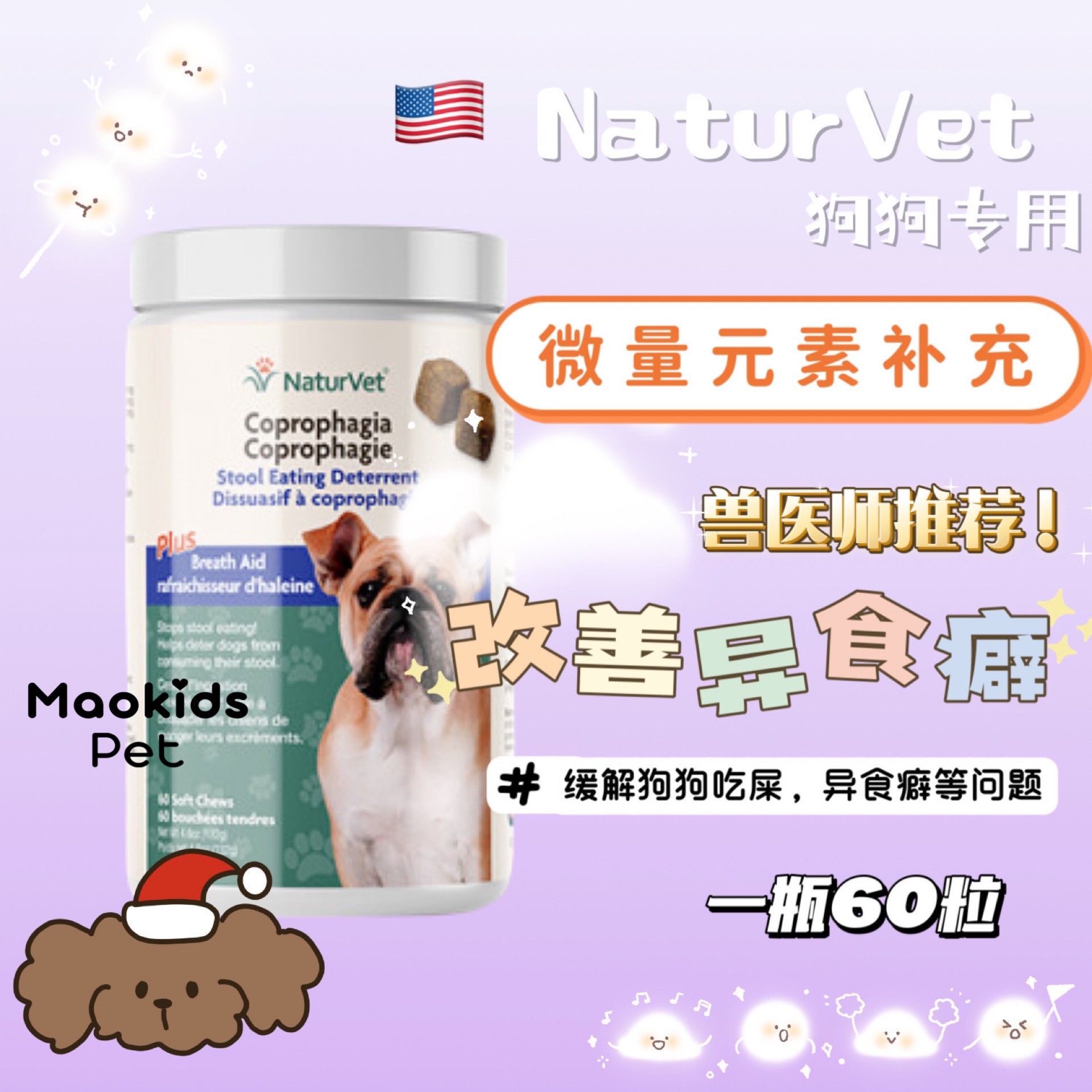 NaturVet 微量元素补充 改善异食癖 60粒一瓶 狗狗专用