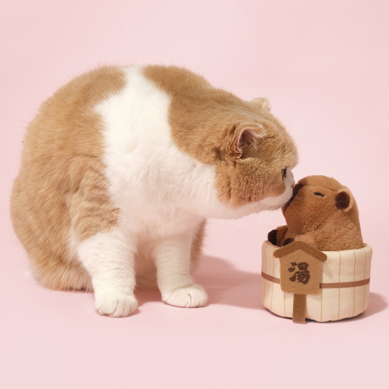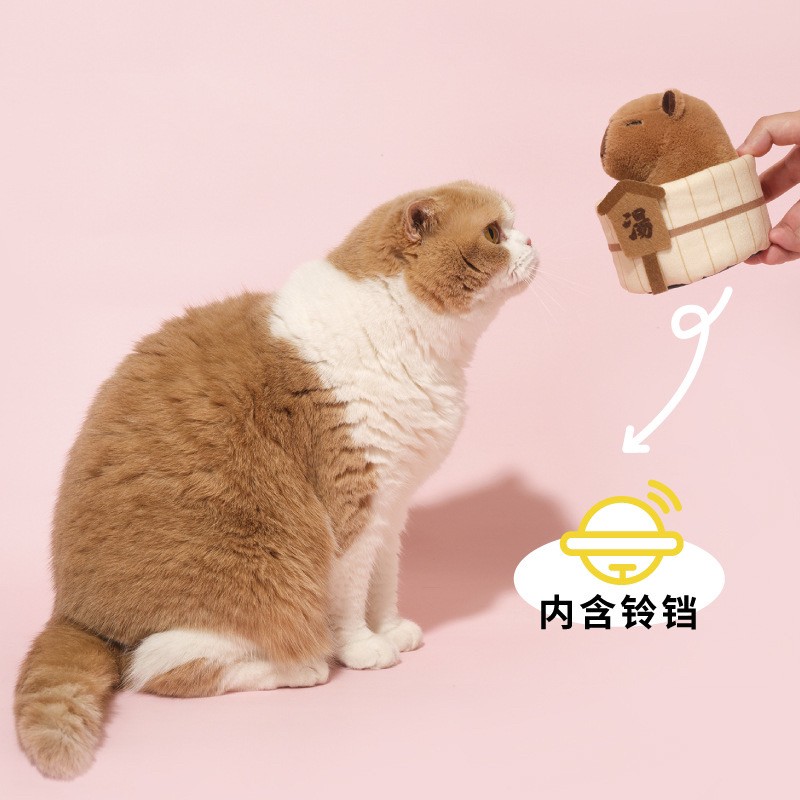 Purlab噗扑实验室 卡比巴拉水豚泡澡藏食玩具 毛绒发声耐咬磨牙自嗨解闷益智猫薄荷玩具