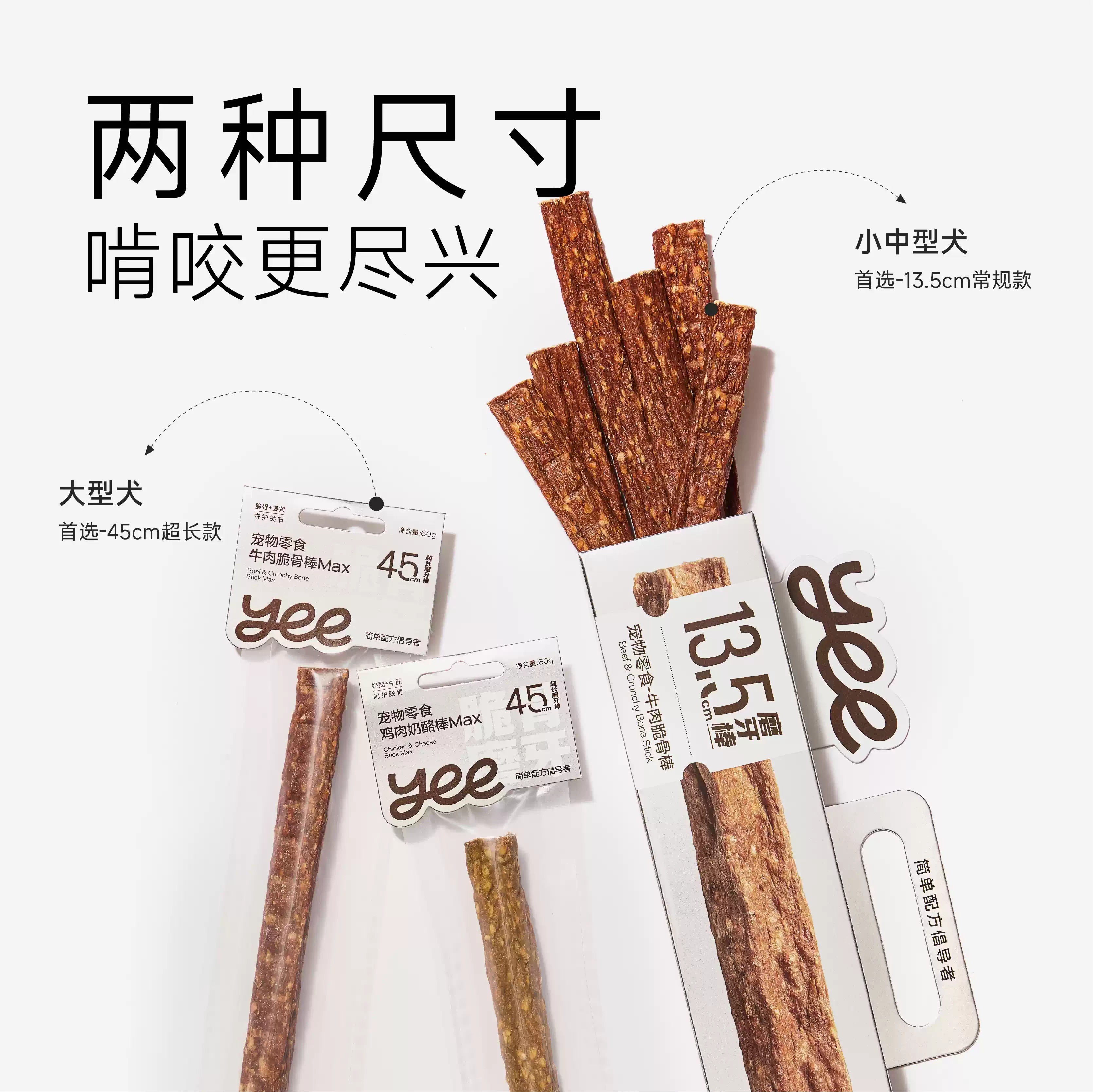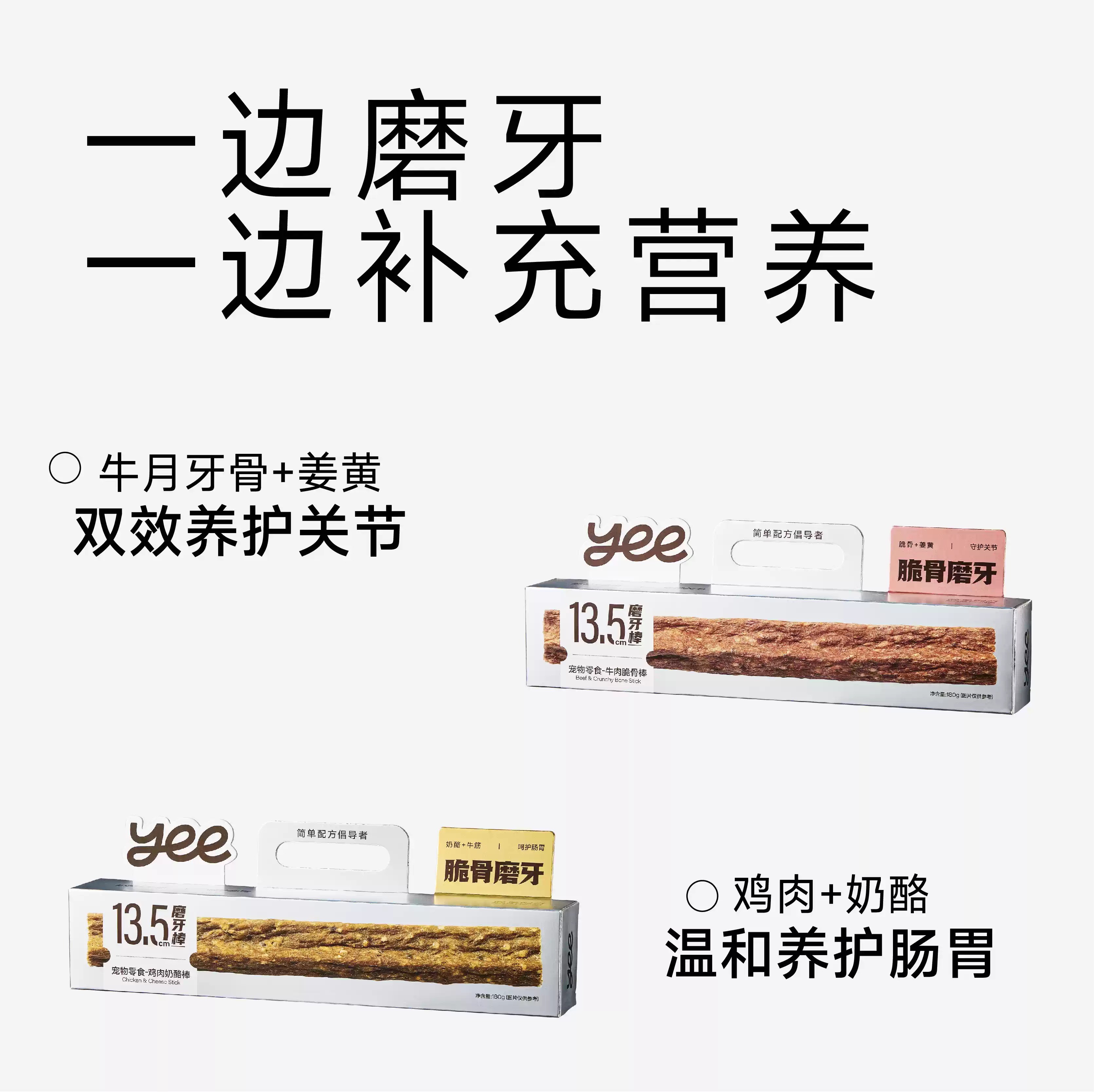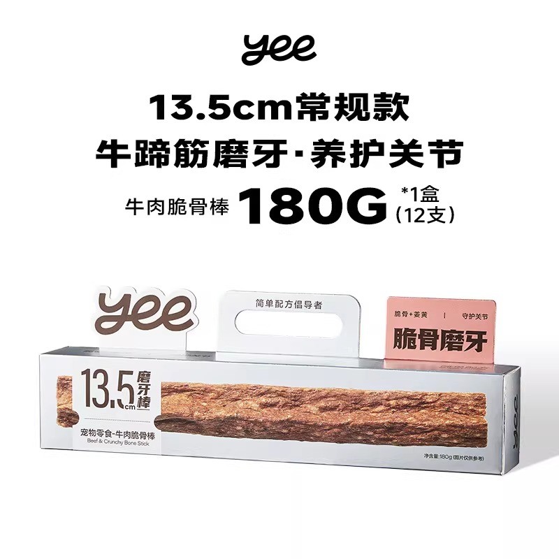 Yeepet 脆骨磨牙棒 宠物狗狗零食 天然牛蹄筋皮 中小型犬洁牙棒训练奖励 两种口味可选 一盒180g